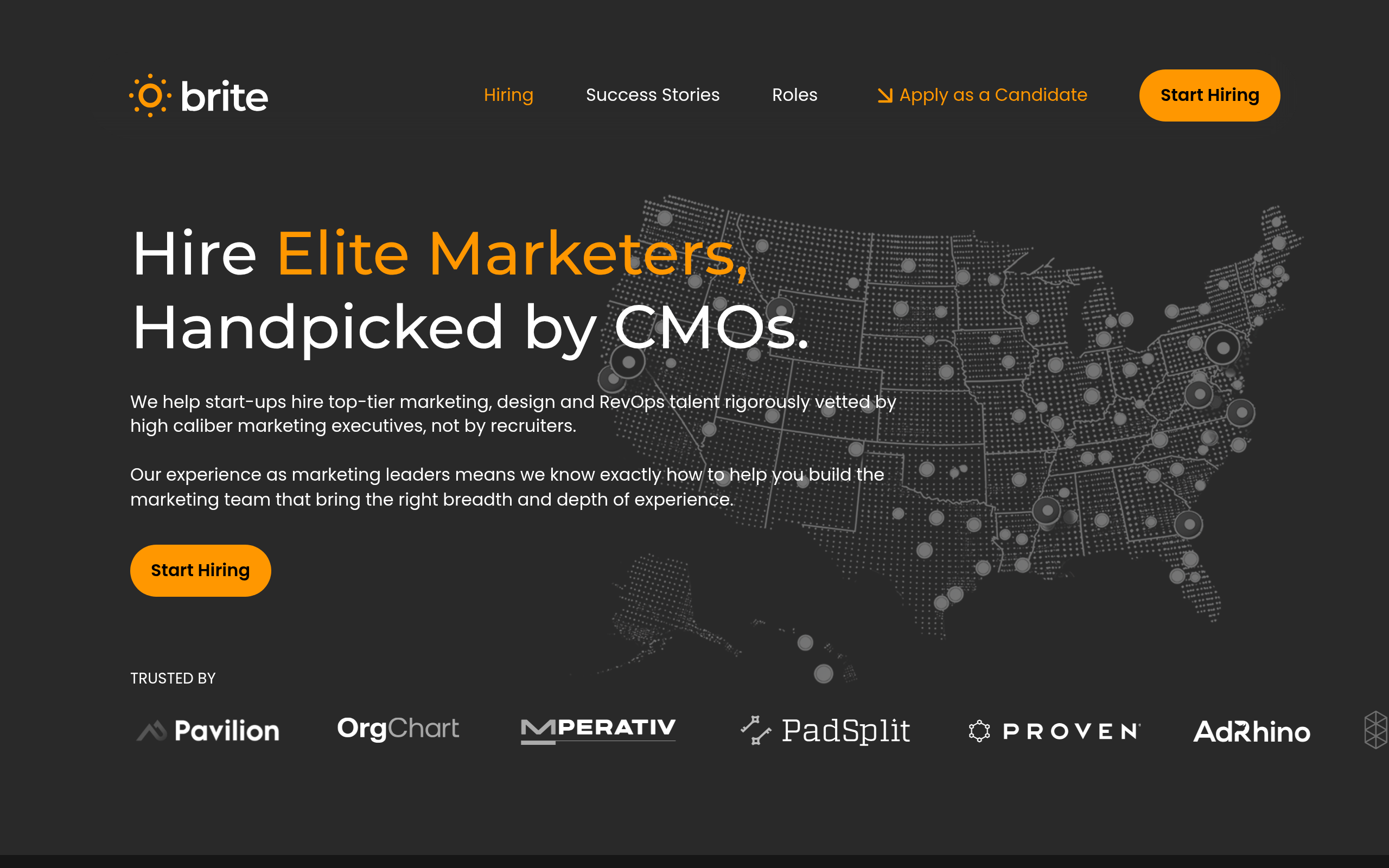 Brite excels in sourcing senior-level marketing talent for startups and growth-stage companies. By leveraging the expertise of seasoned CMOs and VPs, they handpick candidates tailored to organizational needs. Their intensive vetting process, combined with rapid matching, allows recruitment to be completed in under four weeks. Brite's unique approach ensures a curated selection process, building global remote teams efficiently while keeping clients actively involved.