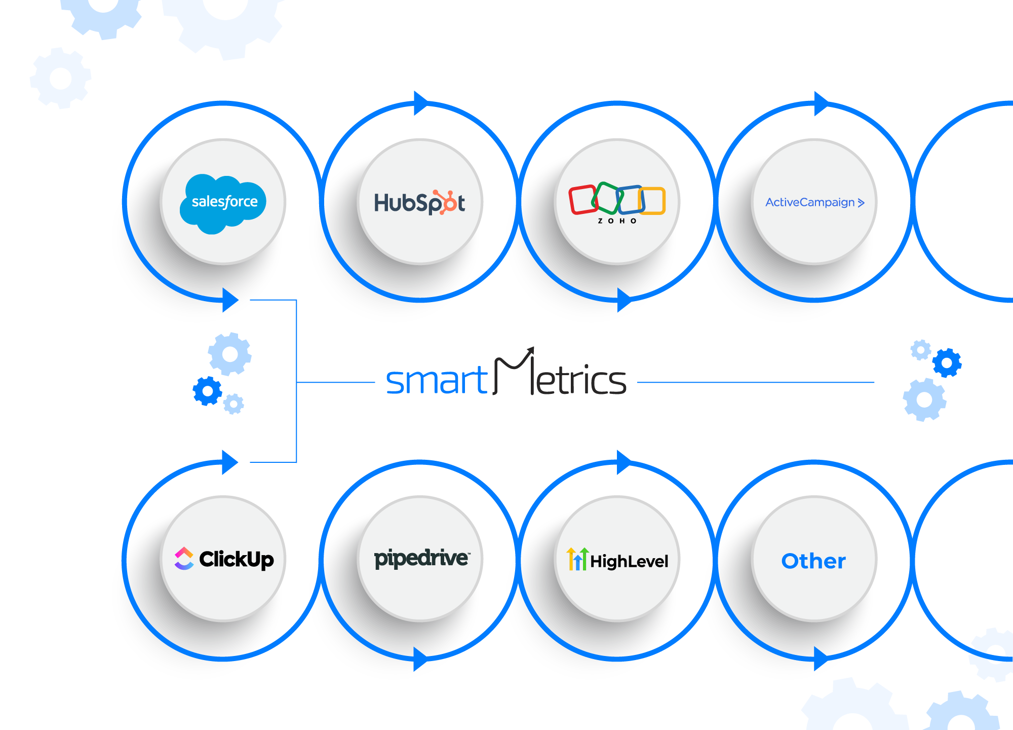 Hire SmartMetrics experts to connect your CRM, AI, e-commerce, and marketing tools. From HubSpot to Shopify to OpenAI, we build workflows that run endlessly - no per-task fees.
